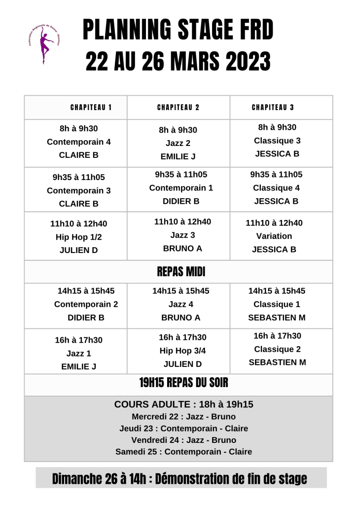 Voici la fiche d’inscription, le planning en PDF ainsi qu’une fiche de renseignements pour les tarifs.