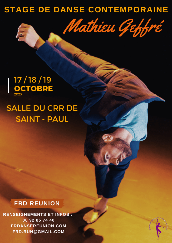 Mathieu Geffré vous propose de créer une chorégraphie spécialement pour les danseurs réunionnais. Cette chorégraphie sera dansée au Danse en région du dimanche 19 novembre 2023.