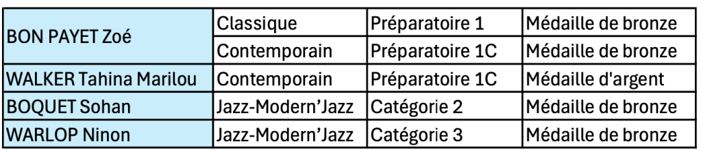 Maï-Lan a obtenu une médaille d’argent en Contemporain catégorie 2 et Louna une médaille de bronze en Caractère-Flamenco catégorie préparatoire.